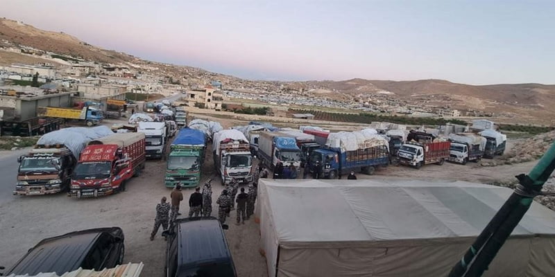 وفي عرسال، تجمعت منذ ساعات الصباح الأولى حافلات وشاحنات صغيرة، يحمل بعضها لوحات تسجيل لبنانية وأخرى سورية، قبل بدء انطلاقها تدريجيًا الى الأراضي السورية من عرسال والقاع عبر معبر الزمراني في ريف دمشق.