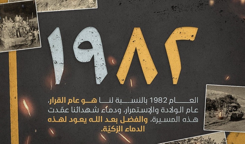 وفي كلمةٍ له خلال الاحتفال المركزي الذي أقامه حزب الله إحياءً لذكرى “القادة الشهداء”، أكد نصرالله أنَّ “العام 1982 بالنسبة لنا كان عام القرار، التأسيس، الولادة، الانطلاقة، والاستمرار الذي ما زال قائمًا حتى الآن”، مشيرًا إلى أنَّ دماء الشهداء عمَّدت هذه المسيرة وأعطتها كل ما هي عليه الآن. ولفت الى أنَّ اجتياح 1982 شكل تهديدًا رئيسيًا واستثنائيًا للبنان والمنطقة والقضية الفلسطينية وسوريا لكن التهديد الأكبر كان للبنان.