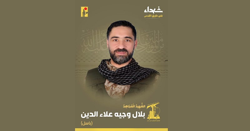 وقالت المقاومة في بيان: بمزيد من الفخر والإعتزاز، تزف المقاومة الإسلامية الشهيد المجاهد بلال وجيه علاء الدين “باسل” مواليد عام 1984 من بلدة مجدل سلم في جنوب لبنان، والذي ارتقى شهيداً على طريق القدس.