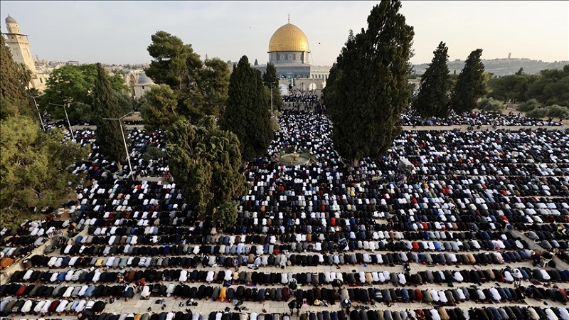 وقد أدى الفلسطينيون صلاة عيد الأضحى المبارك في باحات المسجد الأقصى، رغم منع وقيود قوات الاحتلال الإسرائيلي وتضييقاته.