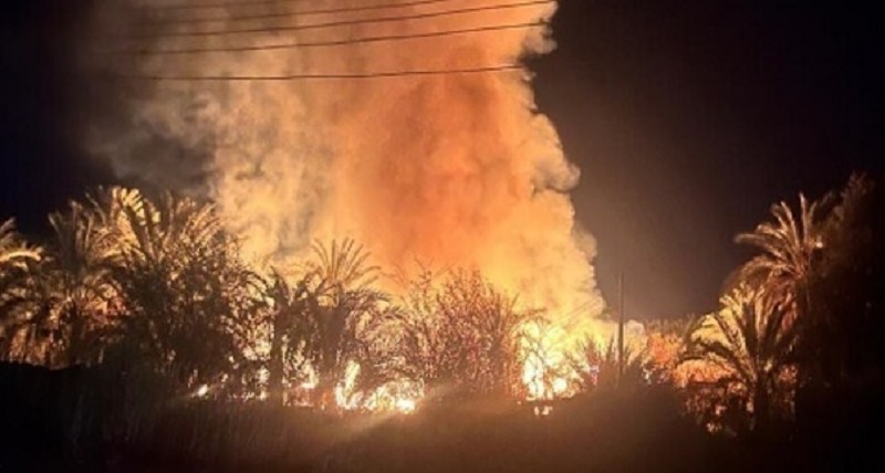 نشب حريق هائل في الساعات الأولى من فجر الأربعاء، بمزارع نخيل بواحة الداخلة بمحافظة الوادي الجديد في مصر.