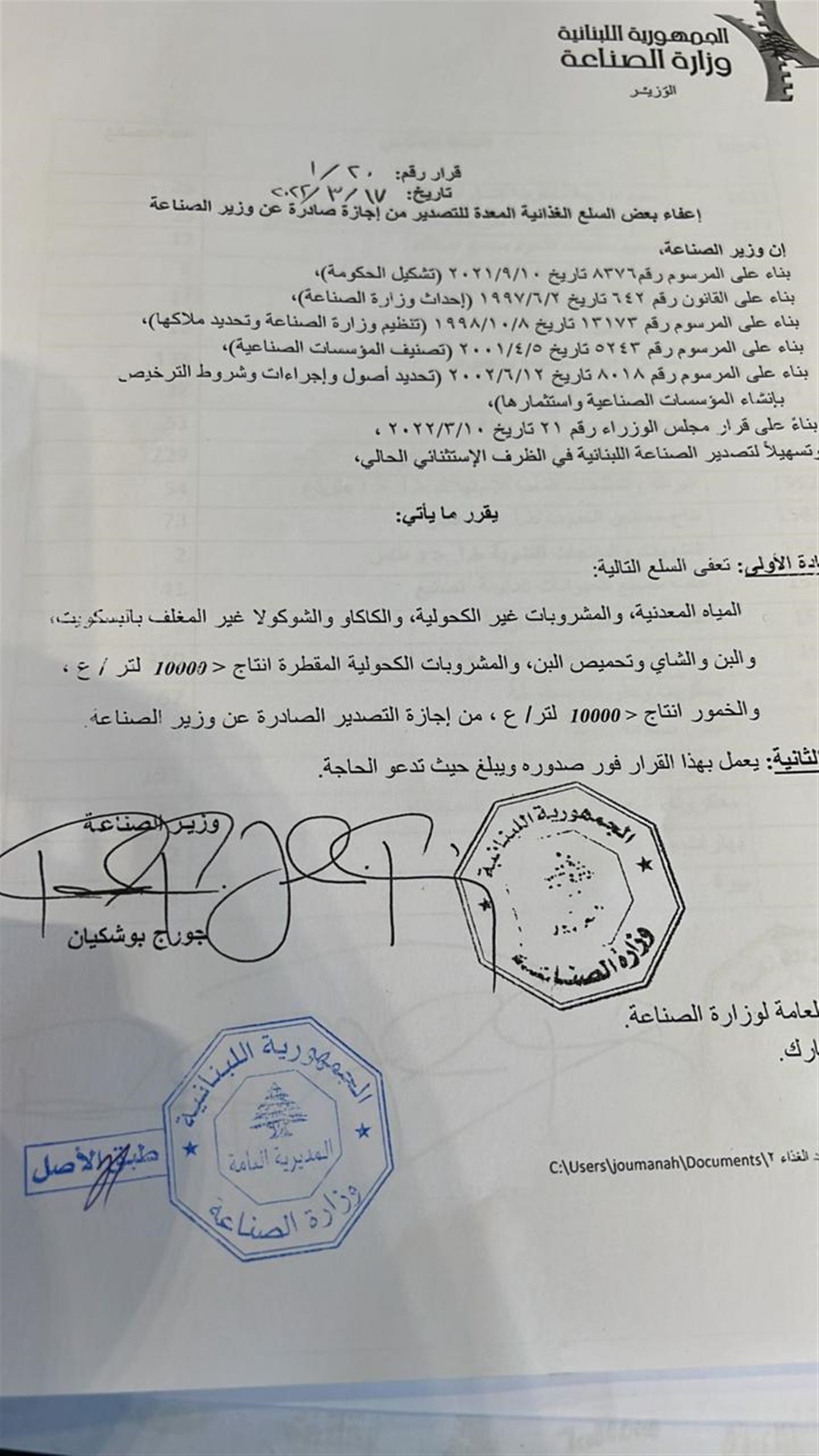 الرئيسيةاقتصادبالصور: لائحة جديدة للسلع المعفاة من إجازة التصديراقتصادشريط الاحداثبالصور: لائحة جديدة للسلع المعفاة من إجازة التصدير أصدرت وزارة الصناعة لائحة جديدة بالسلع الغذائيّة المعدّة للتصدير، والمعفاة من الإجازة الصادرة عن وزير الصناعة، وتجدونها في الصّور المرفقة. Tagsتصديرجورج بوشكيانمواد غذائيةوزارة الصناعةشريط الأحداثالأحزاب السياسية في غرينلاد: “لا نريد أن نكون أميركيين” 10/01/2026 قنبلة صوتية على كفركلا 10/01/2026 منخفض جوي ثانٍ إلى لبنان الأسبوع المقبل 10/01/2026 بالفيديو – انهيار جزء من جسر في عكار 10/01/2026 مقالات ذات صلة شريط الاحداثالأحزاب السياسية في غرينلاد: “لا نريد أن نكون أميركيين” 10/01/2026 أمن و قضاءقنبلة صوتية على كفركلا 10/01/2026 شريط الاحداثمنخفض جوي ثانٍ إلى لبنان الأسبوع المقبل 10/01/2026