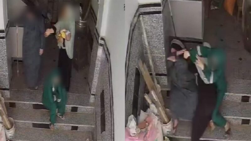 نشر الفيديو حساب باسم علي نبيل، يظهر فيه 3 نساء، كانت الحماة تنظف الدرج، وفجأة تعرضت لهجوم من زوجة ابنها التي ضربتها بخشبة على الدرج، بينما كانت والدة الزوجة تحاول التدخل لفض الاشتباك وتهدئة الموقف.