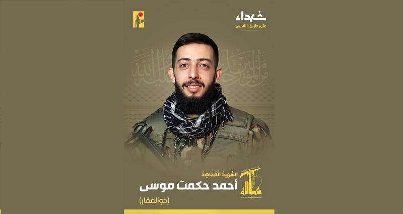 وقالت في بيانها: “بمزيد من الفخر والإعتزاز، تزف المقاومة الإسلامية الشهيد المجاهد أحمد حكمت موسى “ذو الفقار” مواليد عام 1999 من مدينة طرابلس وسكان بلدة علي النهري في البقاع، والذي ارتقى شهيداً على طريق القدس”.