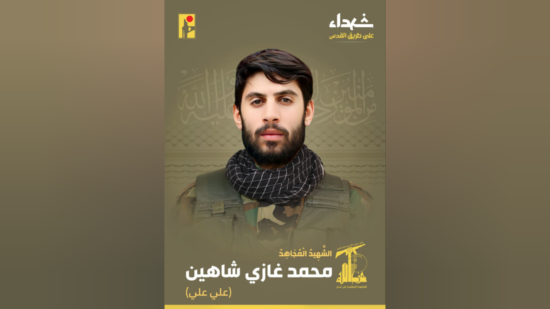 الرئيسيةأمن و قضاءالمقاومة تنعى الشهيد "علي علي"أمن و قضاءشريط الاحداثالمقاومة تنعى الشهيد “علي علي” نعت “المقاومة الاسلامية” الشهيد محمد غازي شاهين.وقالت في بيان: بمزيد من الفخر والإعتزاز، تزف المقاومة الإسلامية الشهيد المجاهد محمد غازي شاهين “علي علي” مواليد عام 1989 من مدينة صور في جنوب لبنان، والذي ارتقى شهيداً على طريق القدس.Tagsالمقاومة الاسلاميةجنوب لبنانحرب غزةشهيدعلى طريق القدسمحمد غازي شاهينشريط الأحداثعبد العاطي: لعدم التصعيد “الاسرائيلي” في لبنان 08/01/2026 “حماس”: لن نكون جزءاً من الترتيبات الإدارية في غزة 08/01/2026 اشتباكات متواصلة في حلب تطال مستشفيات وجامعات 08/01/2026 سلام: عودة أهالي الجنوب وإعادة الإعمار أولوية.. ولدعم الجيش 08/01/2026 مقالات ذات صلة شريط الاحداثعبد العاطي: لعدم التصعيد “الاسرائيلي” في لبنان 08/01/2026 شريط الاحداث“حماس”: لن نكون جزءاً من الترتيبات الإدارية في غزة 08/01/2026 شريط الاحداثاشتباكات متواصلة في حلب تطال مستشفيات وجامعات 08/01/2026