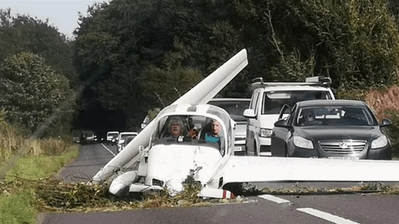 نجا طيار وراكب بأعجوبة من دون أي إصابات خطيرة بعد تحطم طائرتهما الخفيفة على طريق مزدحم.