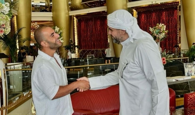 ونشر بلاس صورًا من اللقاء، موضحًا أنه أهدى الجسمي ساعة ثمينة خلال زيارته له، وعلق قائلاً: “كان شرفًا للمطرب الإماراتي حسين الجسمي في برج العرب في دبي. شكرًا لك على وقتك ولطفك وقلبك المتواضع”.