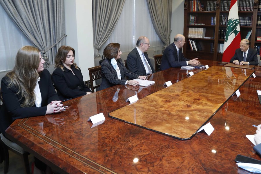 تسلّم رئيس الجمهورية ميشال عون اليوم تقريراً خاصاً بقطاع الاتصالات من رئيس ديوان المحاسبة القاضي محمد بدران في حضور المدّعي العام لدى الديوان القاضي فوزي خميس والقضاة نيلي ابي يونس، نجوى خوري ورانيا اللّقيس.