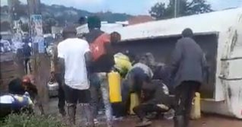 كما أظهرت مقاطع فيديو منشورة على منصة إكس شاحنة الوقود مقلوبة على جانبها، بينما يهرع بعض السكان نحوها للحصول على الوقود.
