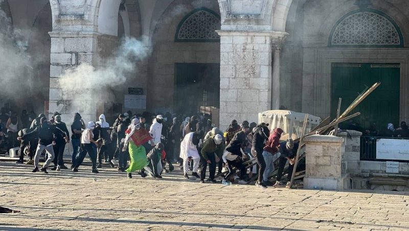 كذلك، أشارت وكالة “وفا” إلى أن قوات الاحتلال لاحقت المصلين واعتدت عليهم بالضرب وأخلت معظمهم من باحات الاقصى، واغلقت كافة البوابات المؤدية إليه، باستثناء باب حطه، وأن هناك عددا من المصلين ما زالوا محاصرين في مسجد قبة الصخرة والمسجد الأقصى.