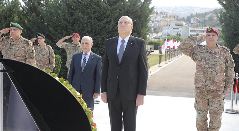وكان ميقاتي قد توجه إلى وزارة الدفاع الوطني، لمناسبة الذكرى 81 للاستقلال، حيث وضع إكليلاً من الزهر على النصب التذكاري لشهداء الجيش، بحضور وزير الدفاع، موريس سليم، وقائد الجيش العماد جوزاف عون، وكبار الضباط.