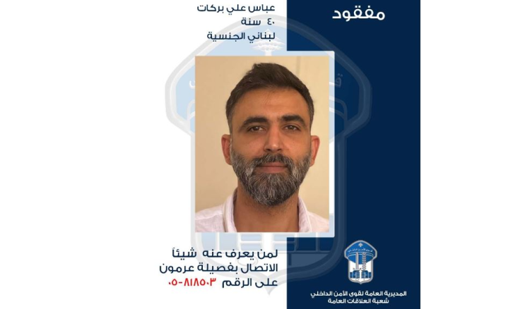 عممت المديرية العامة لقوى الامن الداخلي – شعبة العلاقات العامة، بناء على اشارة القضاء المختص صورة المدعو: عباس علي بركات (مواليد عام 1984 لبناني) الذي غادر منزل ذويه الكائن في محلة خلدة – شارع “مدرسة لاسيم” بناية الامير في الساعة 20,30 من تاريخ 23/11/2024 الى جهة مجهولة ولم يعد لغاية تاريخه.