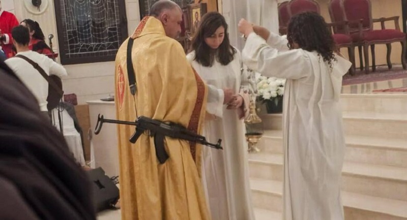 الرئيسيةأمن و قضاءبالفيديو: كاهن يحمل سلاحاً!أمن و قضاءشريط الاحداثبالفيديو: كاهن يحمل سلاحاً! في مشهدٍ مُلفت، حمل كاهن رعية كنيسة مار مارون في مزرعة يشوع سلاحاً في قداس العيد، ثم رمى السلاح وقال: “علينا أن نسلّمه كلنا للجيش”.https://al-jareeda.com/wp-content/uploads/2024/12/ssstwitter.com_1735140409559.mp4Tagsالجيش اللنانيسلاحقداس العيدكاهنكنيسة مار مارونمزرعة يشوعشريط الأحداثقتيلان بانفجار سيارة في حيفا (فيديو) 04/02/2026 أسعار النفط تتصاعد مع توقف المحادثات النووية! 04/02/2026 قصف مدفعي ثقيل باتجاه راميا وبيت ليف 04/02/2026 بطولة وصل لكرة السلة: الحكمة يتجرّع الخسارة من أستانا 04/02/2026 مقالات ذات صلة شريط الاحداثقتيلان بانفجار سيارة في حيفا (فيديو) 04/02/2026 شريط الاحداثأسعار النفط تتصاعد مع توقف المحادثات النووية! 04/02/2026 أمن و قضاءقصف مدفعي ثقيل باتجاه راميا وبيت ليف 04/02/2026