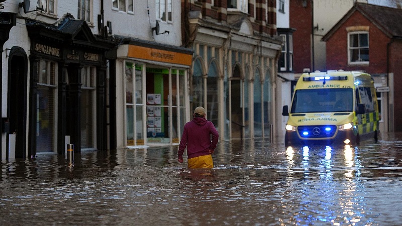 واضطر مئات السكان في مدينة ستوكتبورت، إلى مغادرة منازلهم بسبب الفيضانات الشديدة التي تؤثر على المنطقة، تاركين سياراتهم وراءهم.