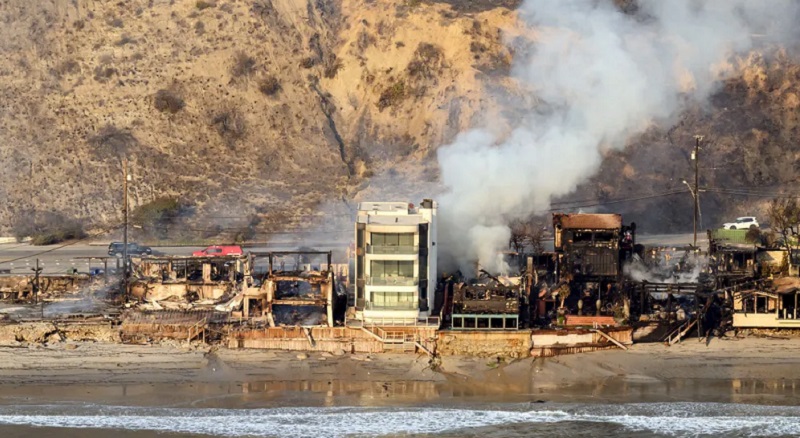 ومن الأمثلة المذهلة على ذلك أيضاً، قصر توم هانكس الواقع على جرف صخري، فبينما امتدت النيران إلى أعلى جرفه في باسيفيك باليساديس، وأحرقت المنازل الواقعة فوقه وتحته، بدا منزل هانكس الذي تبلغ قيمته 26 مليون دولار، والذي يقال إنه اشتراه مع زوجته ريتا ويلسون في عام 2010، غير متأثر بالنيران أو الدخان.