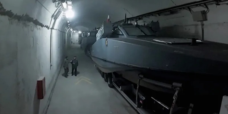 وأظهرت اللقطات عشرات السفن الصغيرة المجهزة برشاشات وصواريخ في أنفاق المنشأة تحت الأرض.
