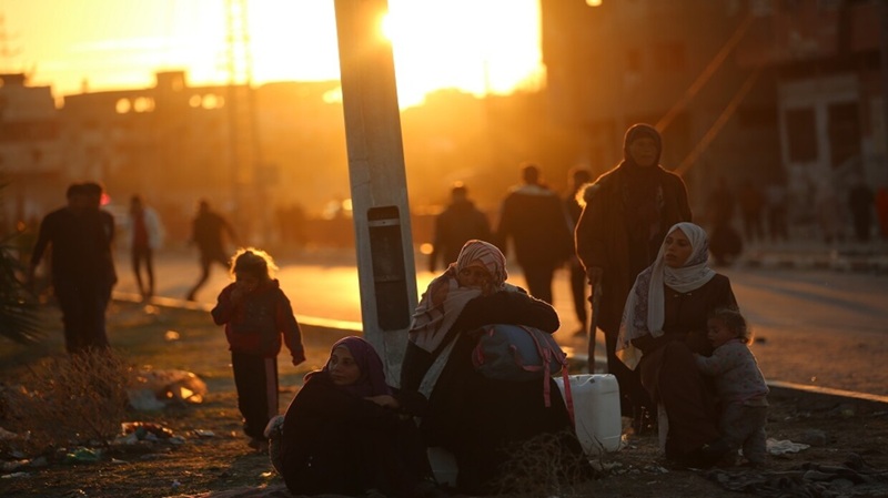 افترشت العائلات الفلسطينية الأرض على تبة نويري في الطقس البارد، بانتظار انسحاب دبابات جيش الاحتلال الإسرائيلي من محور “نتساريم” كي تتاح لهم العودة إلى منازلهم في شمالي القطاع.