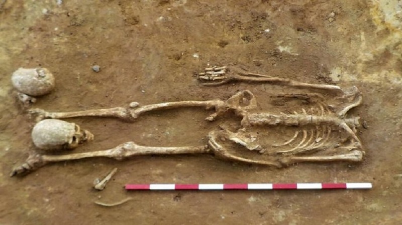 واعتقد علماء الآثار أولاً أن الحجارة سقطت من الجدار القريب، ومع ذلك، فإن التحليل الإضافي كشف حقيقة مذهلة تفيد بأن الهيكل العظمي كان مقطوع الرأس، حيث كانت الجمجمة منفصلة عن باقي العظام.