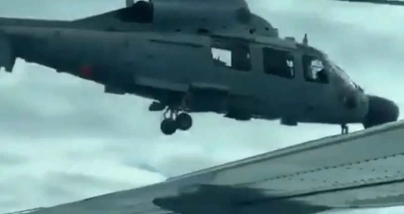 أظهر مقطع مصور مواجهة عن قرب بين مروحية عسكرية تابعة للبحرية الصينية وطائرة تابعة للحكومة الفلبينية.