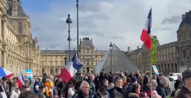 وطالبت تظاهرة باريس باستقالة الرئيس إيمانويل ماكرون والخروج من الاتحاد الأوروبي وحلف “الناتو”.