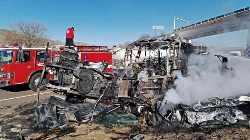 وقد قُتل 14 شخصاً على الأقلّ، في حادث تصادم بين حافلة كانت آتية من الولايات المتّحدة وشاحنة، في ولاية دورانغو (شمال)، وفق ما أعلنت الحماية المدنية.