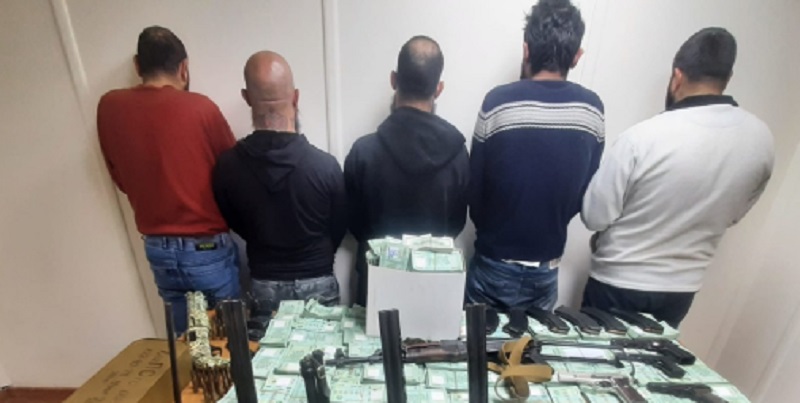 بتفتيشهم وتفتيش منازلهم، تمّ ضبط بندقية كلاشينكوف، وأربعة مسدّسات حربية، وبومب أكشن عدد 2، وأربع بنادق صيد، ومبلغ /1,686,530,000/ ل.ل. و/5964/ دولارًا أميركيًّا.