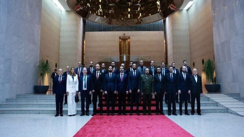 وفي بداية مراسم الإعلان عن تشكيلة الحكومة، قال الشرع: “نشهد ميلاد مرحلة جديدة للمضي نحو المستقبل”. وأضاف أن “الحكومة الجديدة تسعى لإعادة بناء مؤسسات الدولة”.