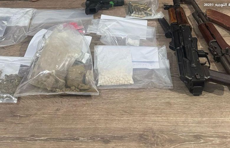 • توقيف المواطنَين (ع.ر.) و(خ.ر.) عند حاجز فيسان – الهرمل لحيازتهما أسلحة وذخائر حربية وضبْط كمية من المخدرات.