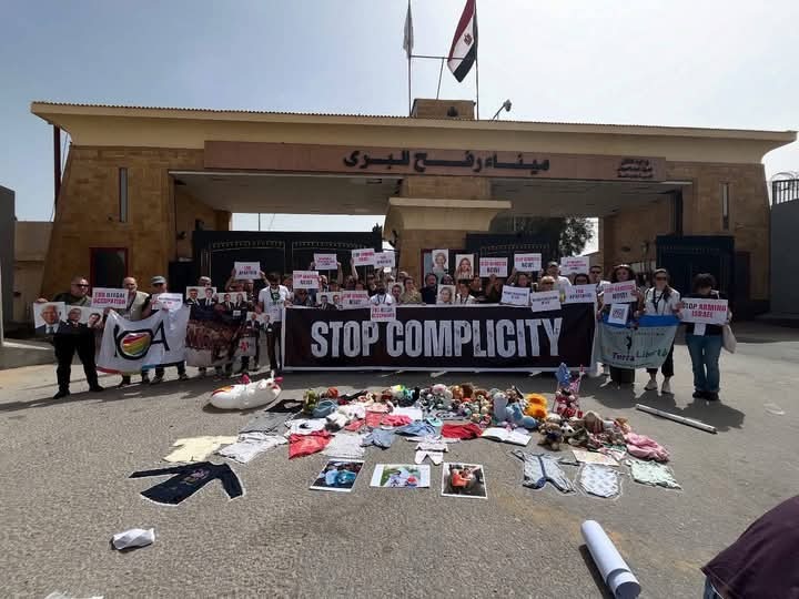 تجمع عشرات النشطاء الإيطاليين أمام معبر رفح الحدودي من الجانب المصري في شمال سيناء للتنديد بالحرب الصهيونية المستمرة على غزة والقيود التي تفرضها على دخول المساعدات إلى القطاع.