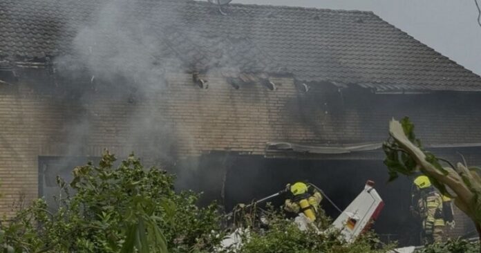 وأفادت صحيفة “بيلد” الألمانية أن أعمدة دخان كثيفة تصاعدت في سماء مدينة كورشنبروخ بمنطقة الراين الأدنى، بينما التهمت النيران جزءا من المنزل.