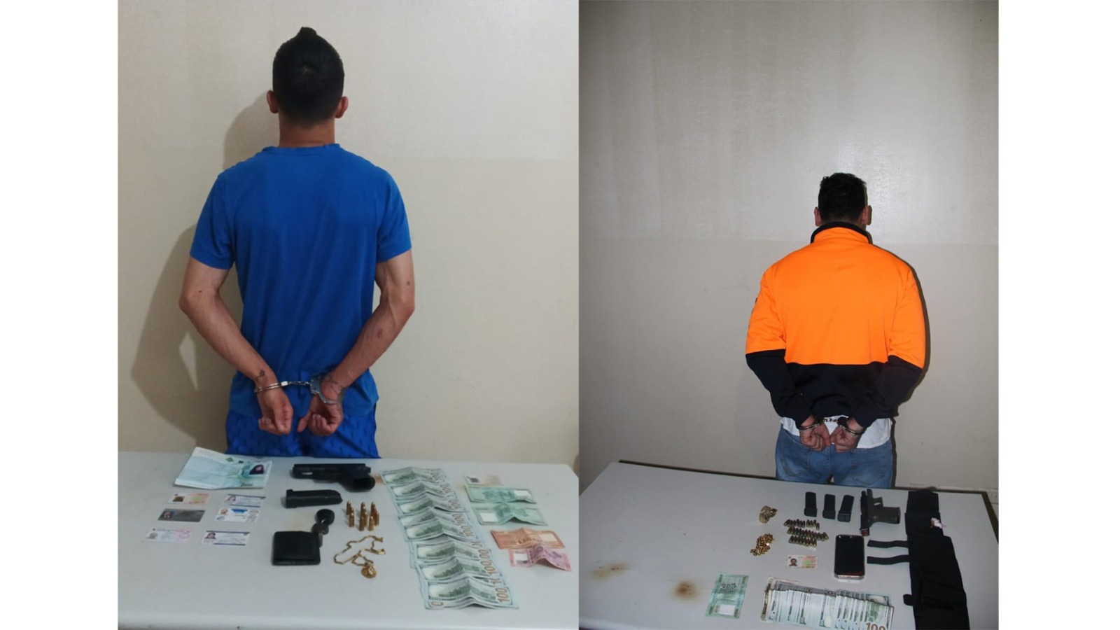 من خلال المراقبة والتّعقُّب، أُلقِيَ القبض عليهما في زحلة وريّاق. وبتفتيشهما، عُثِرَ بحوزتهما على مسدّسَين حربيَّين ومبلغ مالي.