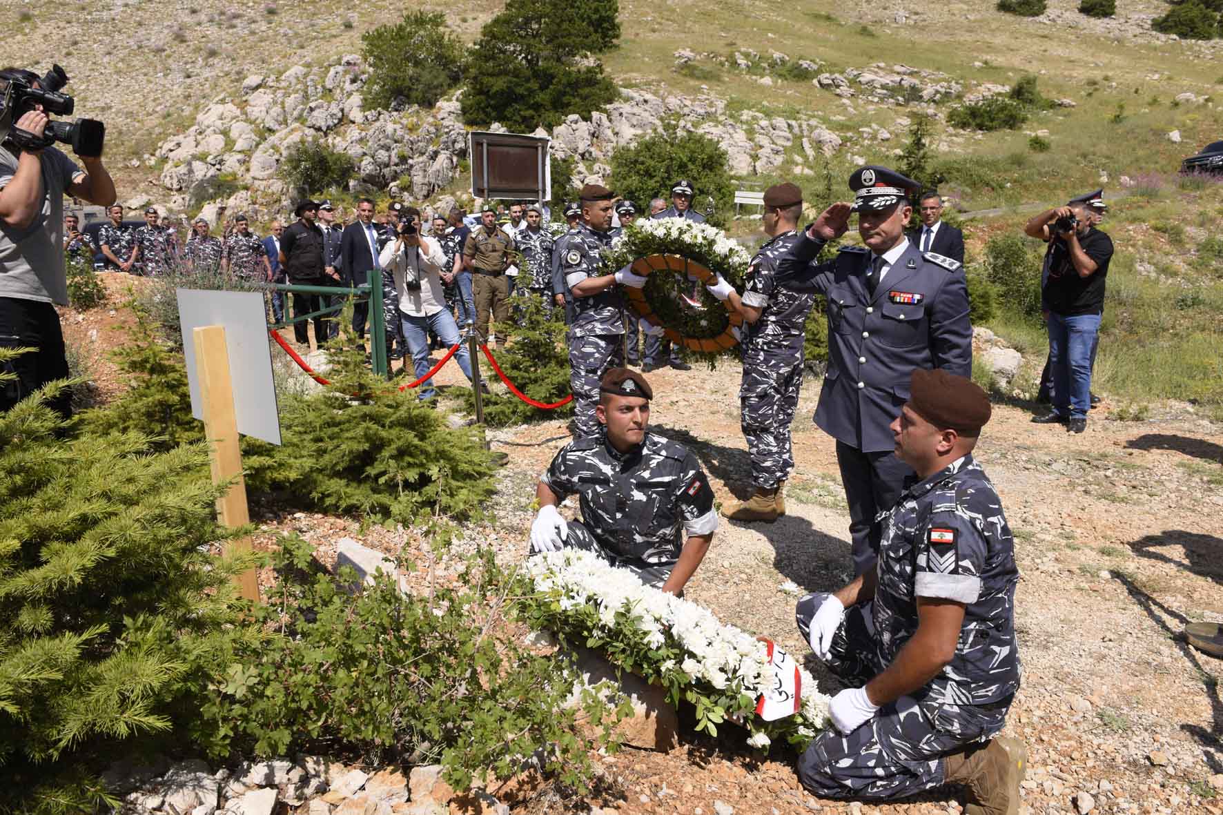 بعد إزاحة السّتارة عن لوحة غابة شهداء قوى الأمن الدّاخلي، من قِبَل ممثِّل رئيس الجمهوريّة الوزير هاني واللواء عبد الله، بحضور قادة الوحدات، وضع اللواء عبد الله إكليلًا من الزهر على نصب شهداء قوى الأمن، كذلك وَضَعَ الوزير هاني إكليلًا من الزّهر، باسم رئيس الجمهوريّة، على النّصب، ليبدأ بعدها الحفل بالنّشيد الوطني اللّبناني ونشيد قوى الأمن الدّاخلي.