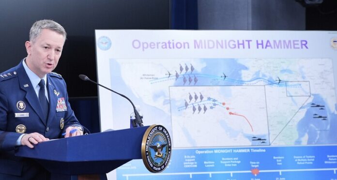كما أفاد أن الولايات المتحدة استخدمت خلال العملية “عدة تكتيكات خداع، بما في ذلك أهداف وهمية”، مع استخدام مقاتلات من الجيلين الرابع والخامس أمام مجموعة القاذفات الضاربة. وكشف أنه خلال الهجوم على 3 منشآت نووية إيرانية في أصفهان ونطنز وفوردو، تمت الاستعانة بكل من: القيادة الاستراتيجية وقيادة النقل وقيادة الفضاء السيبراني وقيادة الفضاء وقوات الفضاء والقيادة الأوروبية للقوات الأمريكية.