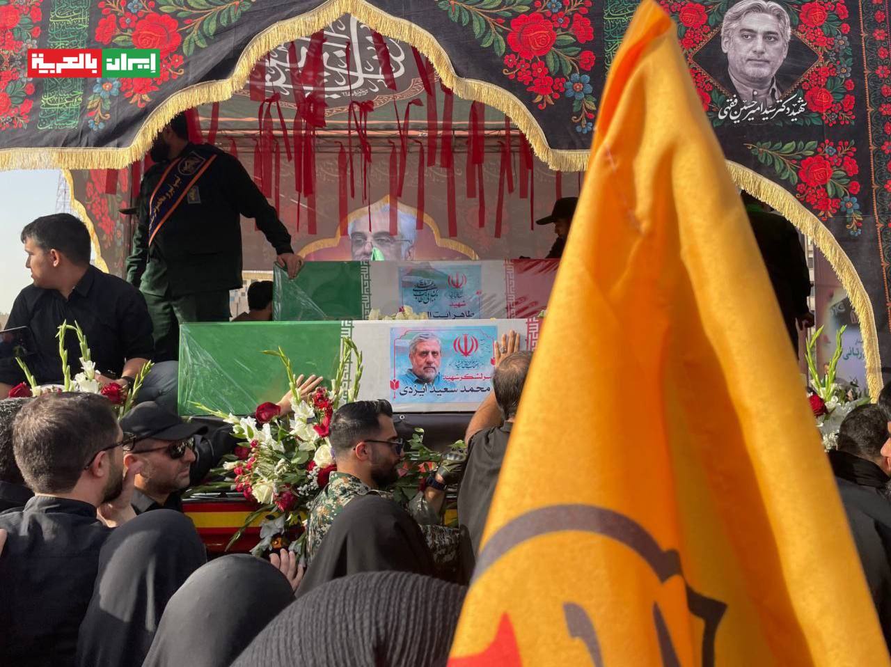 والتشييع يتم في مراسم كبيرة، وضعت فيها أناشيد ثورية إيرانية، حيث يشيع 60 شهيداً، إلى جانب تشييع عدد من النساء والأطفال والصحفيين، مع مشاركة قادة عسكريين كبار منهم قائد قوة القدس العميد اسماعيل قاآني، ورئيس السلطة القضائية والرئيس الإيراني مسعود بزشكيان وغيرهم.