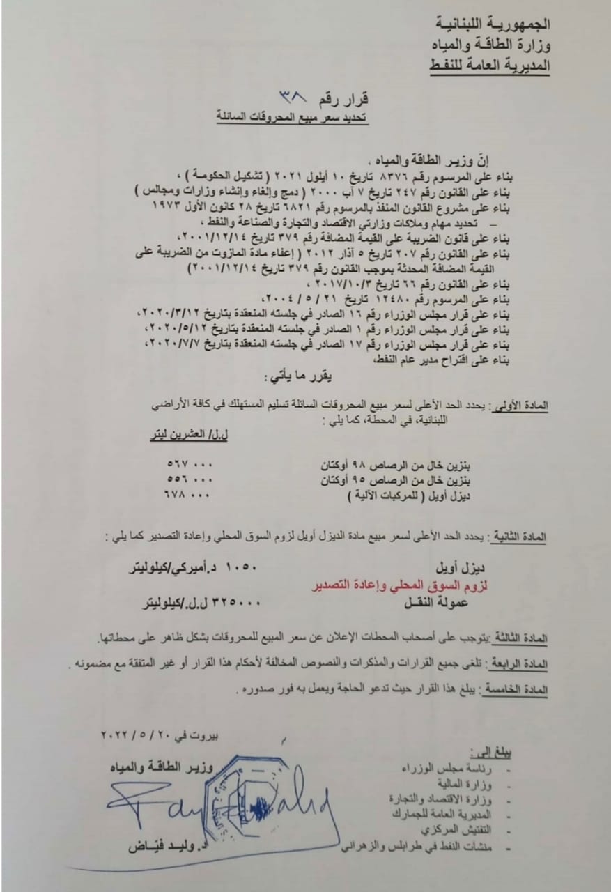الرئيسيةاقتصادتراجع طفيف في أسعار المحروقات اقتصادشريط الاحداث تراجع طفيف في أسعار المحروقات تراجع اليوم، سعر صفيحة البنزين 95 أوكتان 3 آلاف ليرة و98 أوكتان ألفي ليرة والمازوت والغاز ألفي ليرة. وأصبحت الاسعار كالاتي: البنزين 95 أوكتان 556000 ليرة. البنزين 98 أوكتان 567000 ليرة. المازوت 678000 ليرة. الغاز 406000 ليرة. Tagsأسعار المحروقاتالبنزين شريط الأحداث استهداف سيارة على طريق المطار (فيديو وصور) 04/03/2026 غارات “اسرائيلية” على إيران (فيديو) 04/03/2026 “حزب الله” يستهدف رادارات “القبة الحديدية” في حيفا وقاعدة “بلماخيم” 04/03/2026 “حزب الله”: قصفنا أهداف عسكرية في “تل أبيب” وحيفا 04/03/2026 مقالات ذات صلة أمن و قضاء استهداف سيارة على طريق المطار (فيديو وصور) 04/03/2026 شريط الاحداث غارات “اسرائيلية” على إيران (فيديو) 04/03/2026 أمن و قضاء “حزب الله” يستهدف رادارات “القبة الحديدية” في حيفا وقاعدة “بلماخيم” 04/03/2026