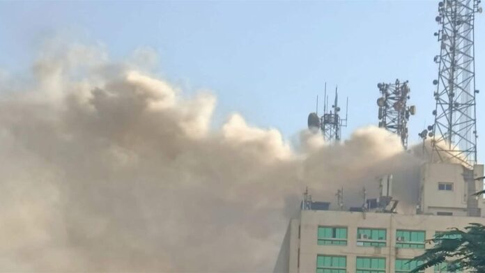 وبدأ الحريق في الطابق السابع من سنترال الهاتف التاريخي في وسط القاهرة.