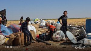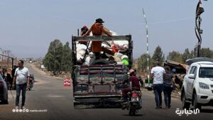 ونشرت “الإخبارية السورية” صوراً لحالات نزوح واسع لعائلات البدو وبعضهم يسير على الأقدام ومنهم من ينقل أثاث بيته في شاحنات.
