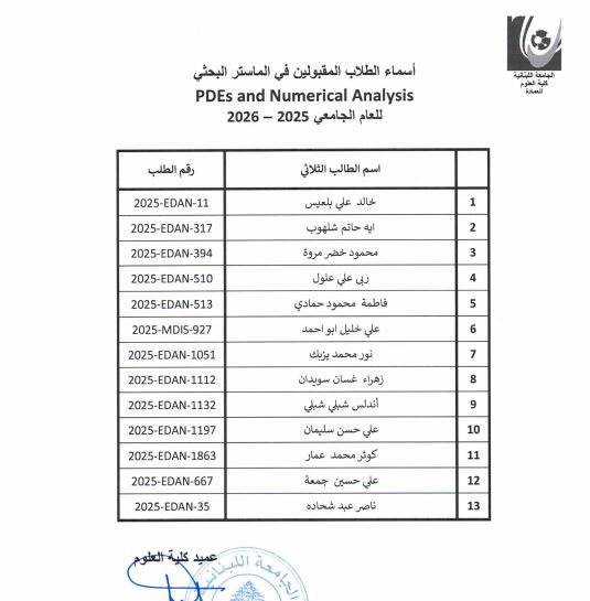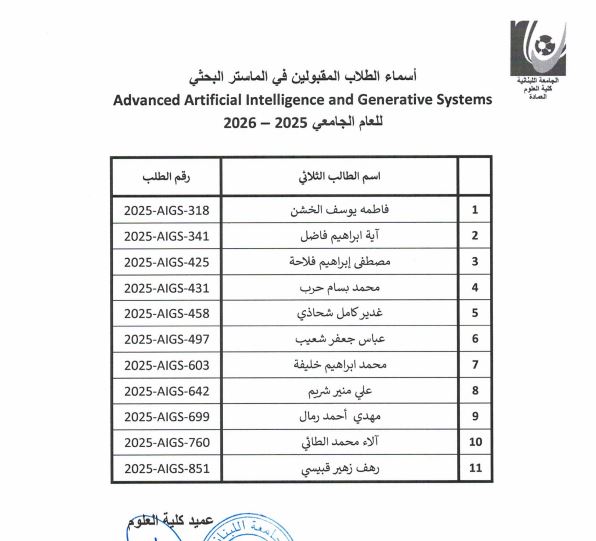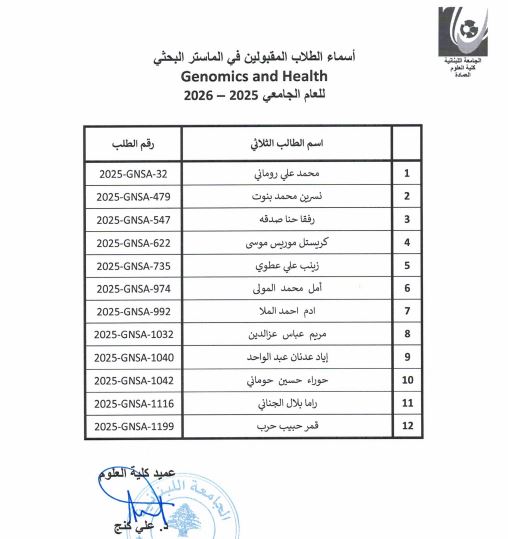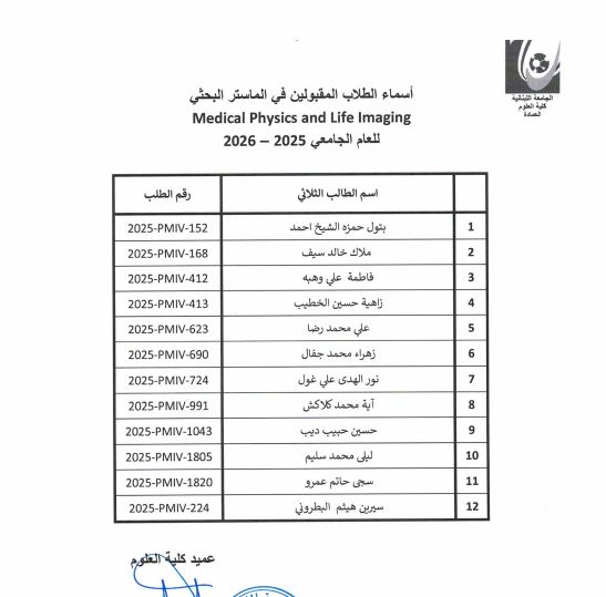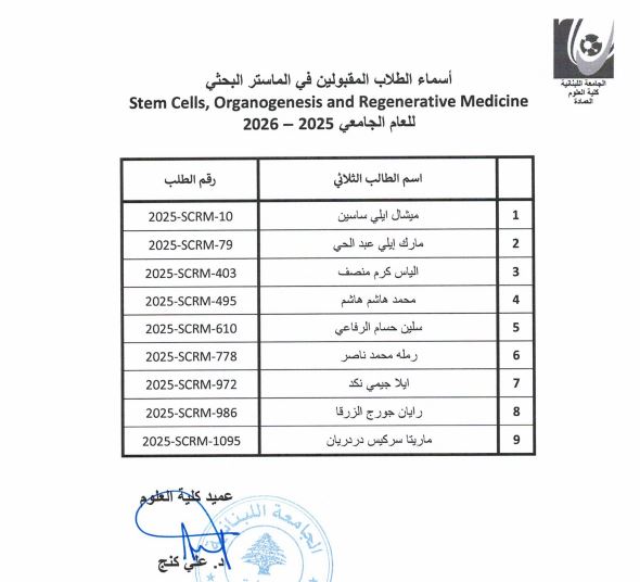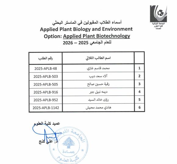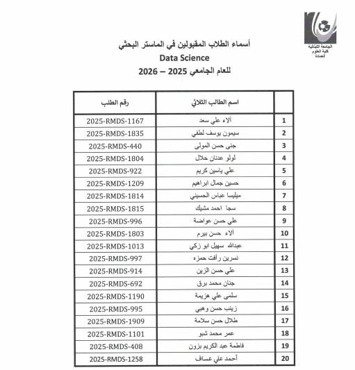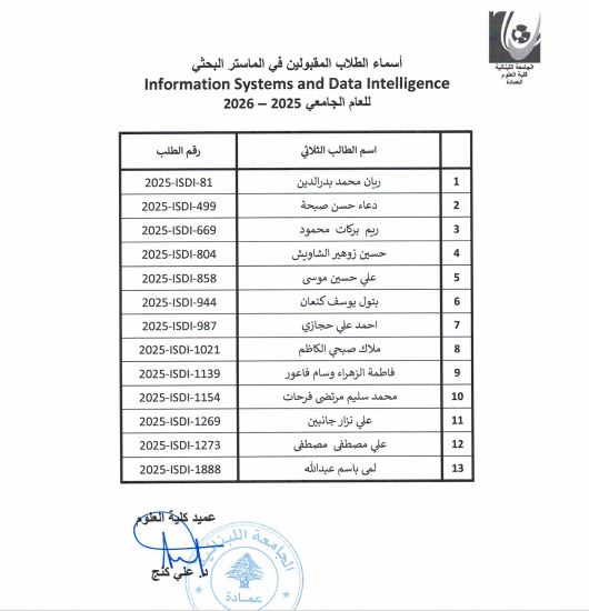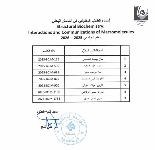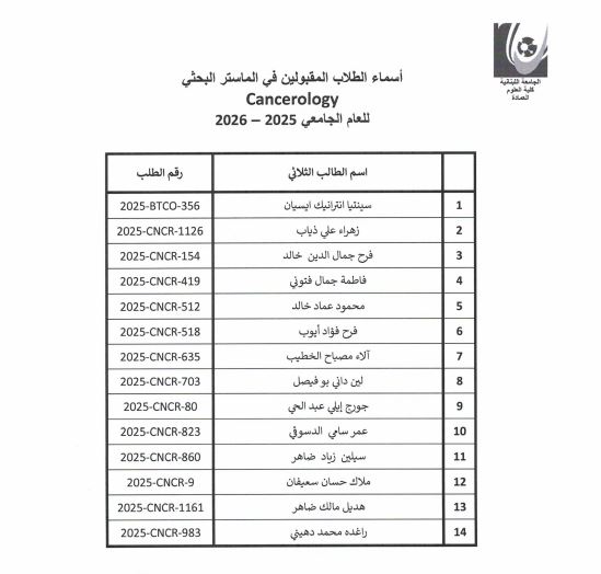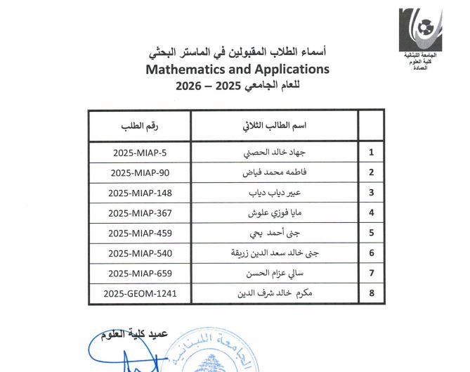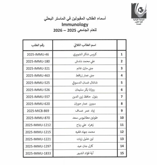 الرئيسيةمنوعاتشبابالمقبولون في اختصاصات السنة الثانية/ماستر بحثي في كلية العلومشبابشريط الاحداثالمقبولون في اختصاصات السنة الثانية/ماستر بحثي في كلية العلوم نشرت الجامعة اللبنانية أسماء الطلاب المقبولين في اختصاصات السنة الثانية/ماستر بحثي في كلية العلوم للعام الجامعي 2025 – 2026النتائج مرفقة بالصور التالية: Tagsاختصاصاتالجامعة اللبنانيةكلية العلومماستر بحثيمقبولونشريط الأحداثتدابير سير السبت 05/12/2025 607 قتيلاً بإعصار سريلانكا (فيديو) 05/12/2025 رجّي لمجلس الأمن: الدبلوماسية خيارنا 05/12/2025 80 قتيلاً في السودان.. والأمم المتحدة تحذر من كارثة إنسانية 05/12/2025 مقالات ذات صلة أمن و قضاءتدابير سير السبت 05/12/2025 شريط الاحداث607 قتيلاً بإعصار سريلانكا (فيديو) 05/12/2025 سياسةرجّي لمجلس الأمن: الدبلوماسية خيارنا 05/12/2025