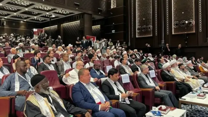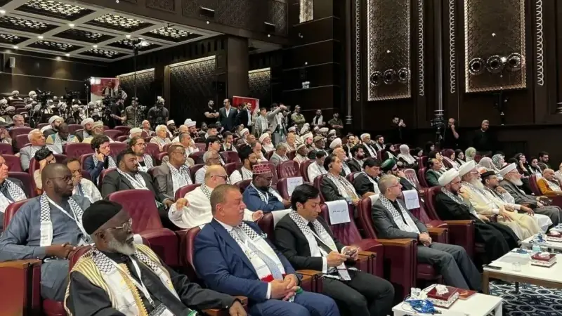 وأشاد المؤتمر بمواقف الدول والشعوب التي وقفت إلى جانب الشعب الفلسطيني، مثمنًا بشكل خاص المواقف الصريحة للمرجعيات الدينية في العراق، وعلى رأسها المرجع الأعلى السيد علي السيستاني.