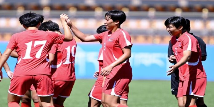 وسجلت تشوي ريم جونغ (2) وباك اوك آي (6 و23 و81) وكانغ ريو مي (17 و42 و48) وري سو جونغ (29 و31) ورو اون هيانغ (40 و45+1) والبديلة سو ريو غيونغ (51) وري يي غيونغ (54) والبديلة تشوي تشونغ غوم (58 و69) أهداف الفوز لكوريا الشمالية.