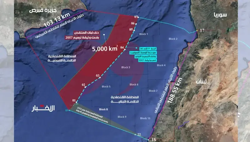 – لم ترسّم قبرص حدودها رسمياً مع لبنان، بل عيّنت حدود بلوكات النفط التي تدّعي ملكيتها وهذا لا يُعدّ ترسيماً.