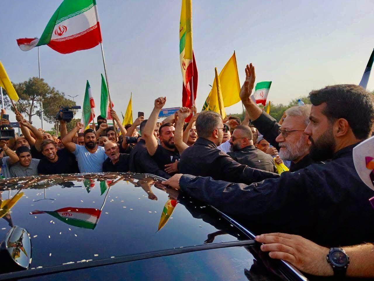 احتشد العشرات من مناصري “حزب الله” في محيط مطار رفيق الحريري الدولي، رافعين الأعلام اللبنانية والإيرانية ورايات الحزب، ومردّدين الهتافات الترحيبية بالمستشار الإيراني علي لاريجاني. وفور وصوله، استقبله في صالون الشرف وفد من “حزب الله” وعدد من الشخصيات السياسية والدبلوماسية الإيرانية واللبنانية.