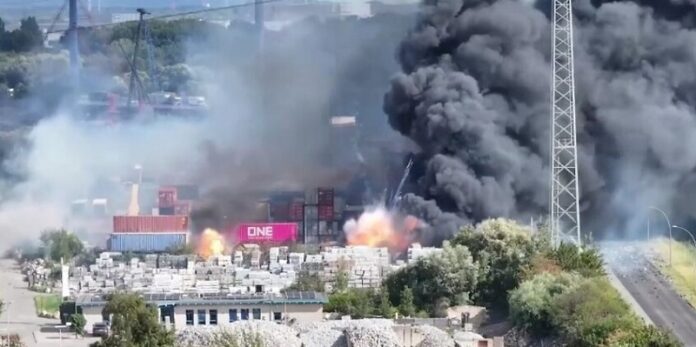 وفي التفاصيل، امتدت النيران إلى مستودع آخر على الأقل بالإضافة إلى عدة حرائق صغيرة في مواقع متفرقة من المنطقة. ووفقا للتحقيقات الأولية، بدأ الحريق في مركبة متوقفة داخل المستودع.