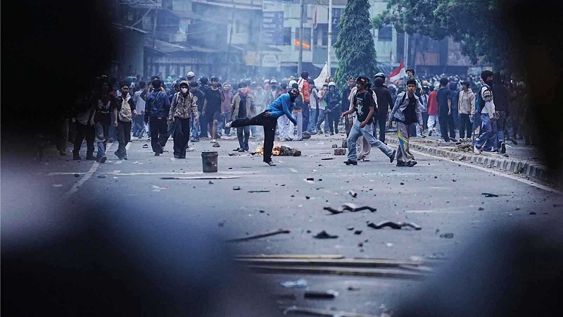 واندلعت الاحتجاجات في العاصمة جاكرتا الأسبوع الماضي بسبب أجور المشرعين، وتصاعدت أمس الجمعة بعد أن صدمت مدرعة للشرطة سائق دراجة نارية ما أدى لمقتله.