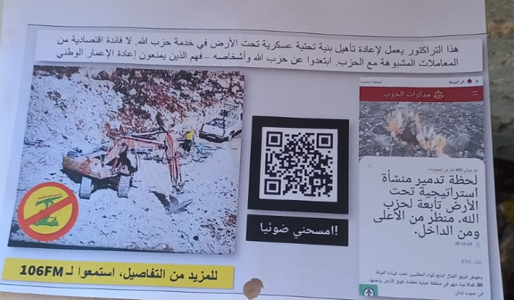 وألقت درون اسرائيلية معادية مناشير في بلدة رب ثلاثين تتضمّن اتهامات لـ”حزب الله “بإعادة تأهيل بنى تحتية عسكرية تحت الأرض تحت غطاء أعمال حفر وبناء. ويحذّر المنشور المواطنين من التعاون مع هذه الأعمال.