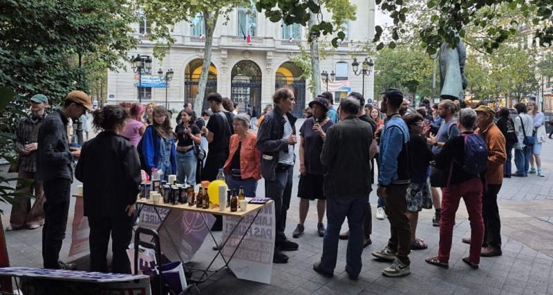 وفي رين، تجمع مئات الأشخاص كثير منهم طلاب، على أنغام الموسيقى في ساحة مبنى البلدية حول طاولة عليها بضع زجاجات نبيذ وخبز.