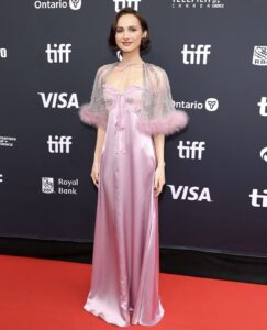 آنيا تايلور خطفت الأضواء في مهرجان تورونتو السينمائي بفستان أزرق فاتح من الساتان الفاخر بقصّة مبتكرة من (Dior)، وأكملت إطلالتها بحلي عصرية وكندرة مدبّبة بيضاء. بدورها سيدني سويني، لفتت الأنظار بفستان طويل من الساتان بلون (Cameo Pink) من دون حمّالات ومنحوت الخصر بنمط الـ”كورسيه” مع وردة توليب حمراء عند خصر التنّورة غير المتماثلة من (Erdem).