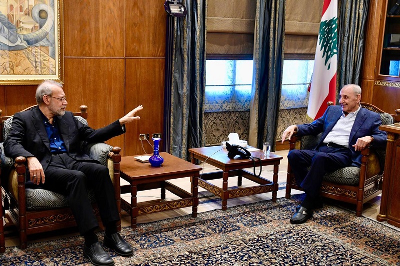أكّد الأمين العام للمجلس الأعلى للأمن القومي الإيراني علي لاريجاني أن لبنان يشكل دولة صديقة لإيران وأن هناك تشاوراً دائماً بين البلدين خاصة في ظل تسارع الأحداث الإقليمية، وذلك خلال لقائه رئيس مجلس النواب اللبناني نبيه بري في عين التينة.