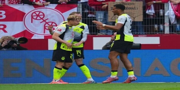 قلّص نادي بوروسيا دورتموند الفارق مع متصدر الدوري الألماني بايرن ميونيخ، بعد فوزه المهم خارج الديار على حساب ماينز بنتيجة 2-0 ضمن منافسات الجولة الخامسة من البوندسليغا، ليرفع رصيده إلى 13 نقطة ويواصل مطاردته للقمة وضغطه على بايرن ميونخ.