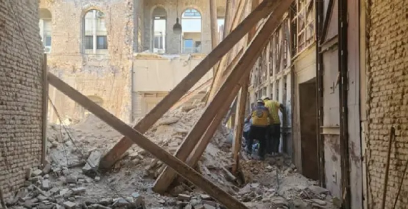 أعلن الدفاع المدني السوري أن انهيارًا جزئيًا وقع في أحد أسقف مبنى السرايا (المقر القديم لوزارة الداخلية) في ساحة المرجة وسط دمشق، أثناء أعمال الترميم الجارية في الموقع.
